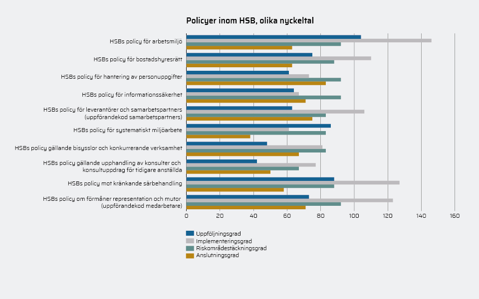 Riskområdestäckningsgrad – visar andelen HSB-föreningar som har en policy för det specifika riskområdet (inräknat både policyer inom HSBs ansvar och om HSB-föreningen har en egen policy).