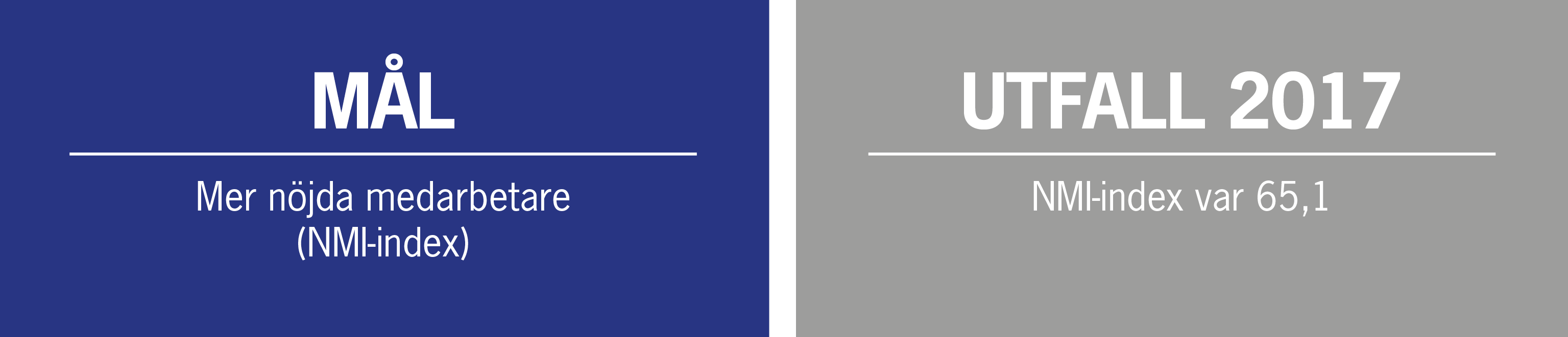 För att följa upp hur HSBs medarbetare upplever sin arbetssituation genomför vi en årlig medarbetarundersökning. Under 2017, som var första året för HSBs gemensamma medarbetarundersökning, använde 14 regionala HSB-föreningar och bolag (motsvarande cirka 40 procent av antalet medarbetare totalt inom HSB) de gemensamt framtagna frågorna i sina undersökningar. Totalt NMI-index (nöjd medarbetarindex) var 65,1. Totalt MMI-index (motiverad medarbetarindex) var 66,5 och ledarskapsindex var 70,3. Totalt sett är HSBs medarbetare nöjda med sin arbetssituation och man känner stark motivation och har tilltro till ledarskapet. Lägre resultat i undersökningen noteras för arbetsbelastningen som periodvis upplevs vara för hög.