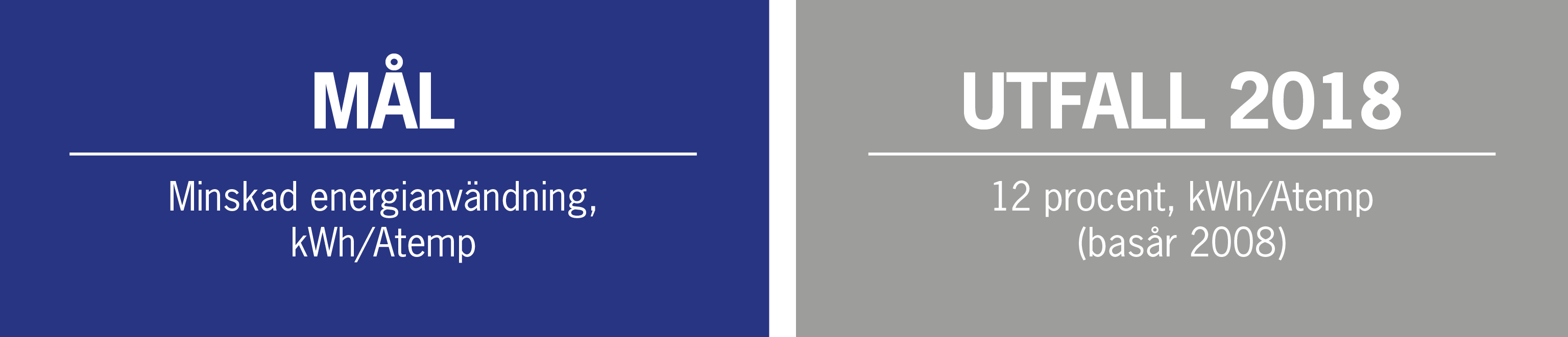 HSBs totala energianvändning (kWh/Atemp) till egenägda hyresfastigheter och lokaler har under 2018 minskat med 12 procent, sedan 2008. Elanvändningen har minskat med 20 procent och fjärrvärmeanvändningen med 5 procent sedan 2008, mätt i kWh/Atemp. De energiposter som är inkluderade i ovanstående är driftel, kontorsel, fjärrvärme, fjärrkyla samt den mindre mängd bränslen som används för uppvärmning av fastigheter (eldningsolja, naturgas och pellets).