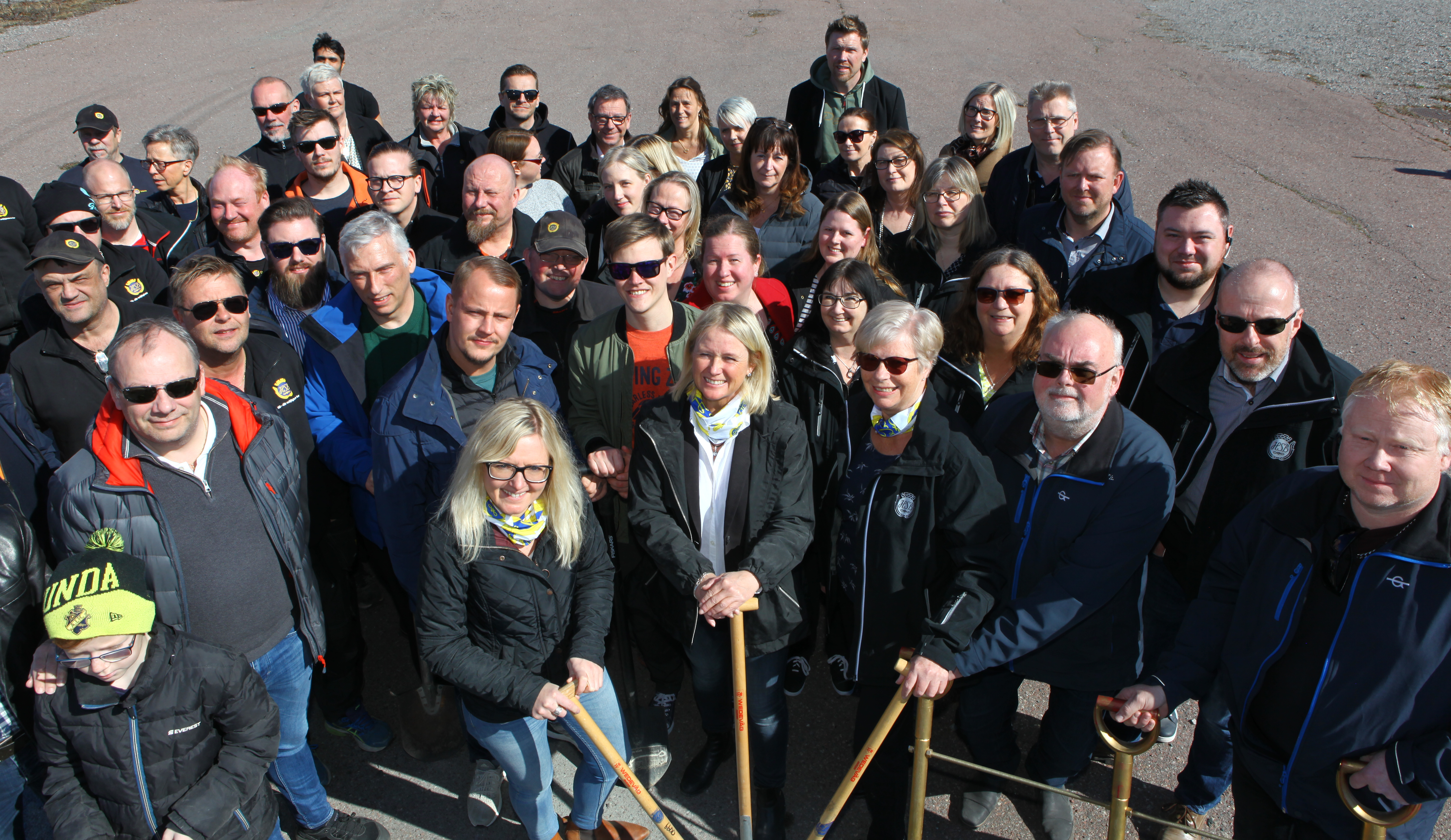 Ett 50-tal HSB-anställda och några specialinbjudna personer var på plats denna strålande soliga och härliga vårdag när det var dags för det symboliska spadtaget som satte igång det nya bygget. Många hade även hörsammat önskemålet om att ta med en egen spade.