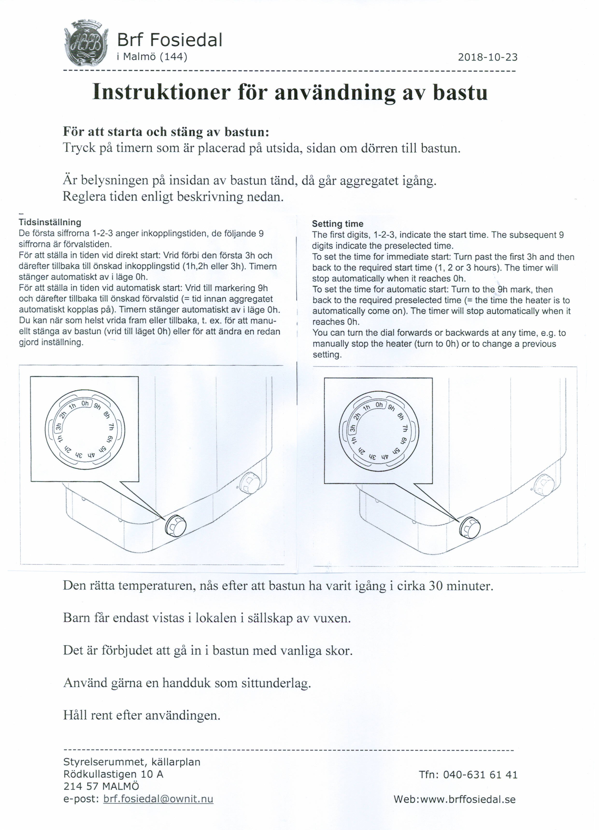 Vänligen titta igenom innan bastun används. Mvh Styrelsen
