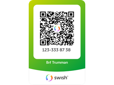 För att få tillträde till vårt gym ska man kontakta vicevärden. En årsavgift på 600 kr betalas via Swish till föreningens konto. Du hittar QR koden för att betala här nedanför. Uppge ditt lägenhetsnummer vid betalningen.