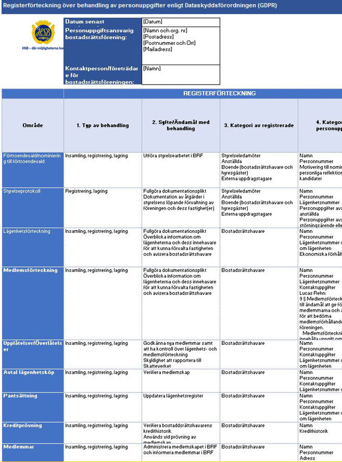 Paketet innehåller totalt 17 dokument med allt stöd ni behöver för att kunna följa lagen, bland annat checklistor och mallar för exempelvis registerförteckning, personuppgiftspolicy och biträdesavtal.