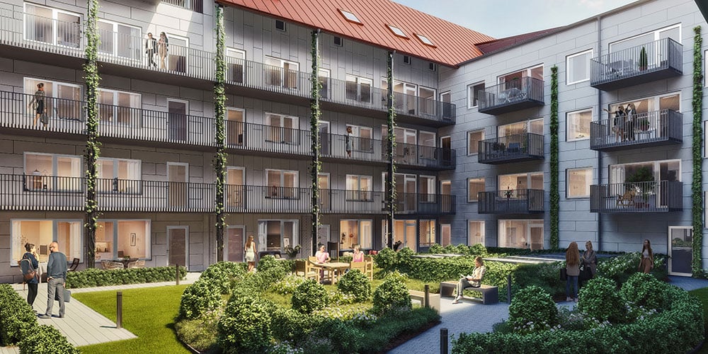 För HSB Malmö blir det första gången som man blandar sina hyres- och bostadsrätter i ett och samma kvarter så här. Tanken är att den gemensamma innergården ska bli en social och trygg plats för alla som bor där, med en grön miljö där det är enkelt att säga hej till och lära känna sina grannar.