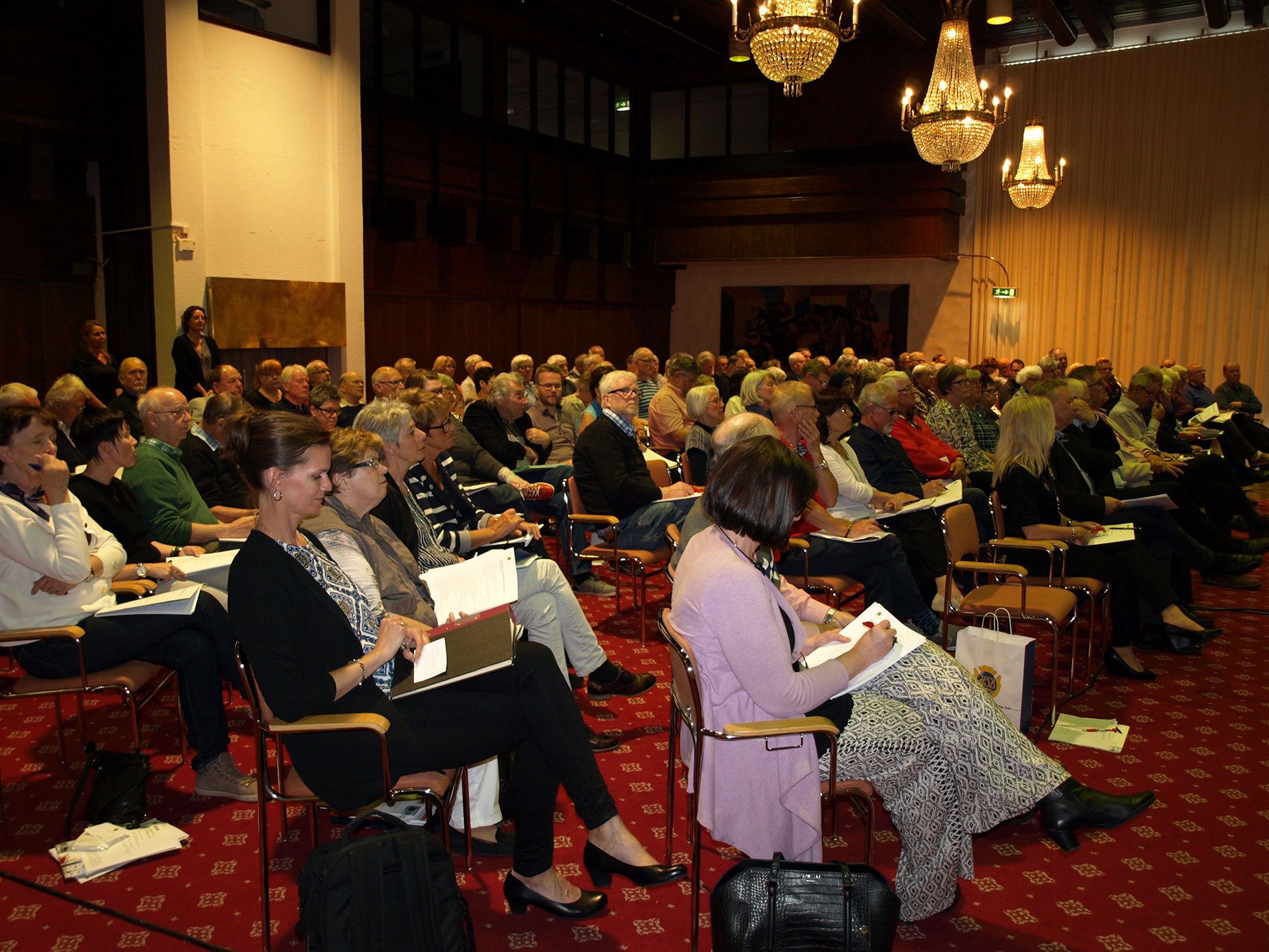Fullmäktigeombud och medlemmar på plats i Bergasalen, Billingehus, Skövde