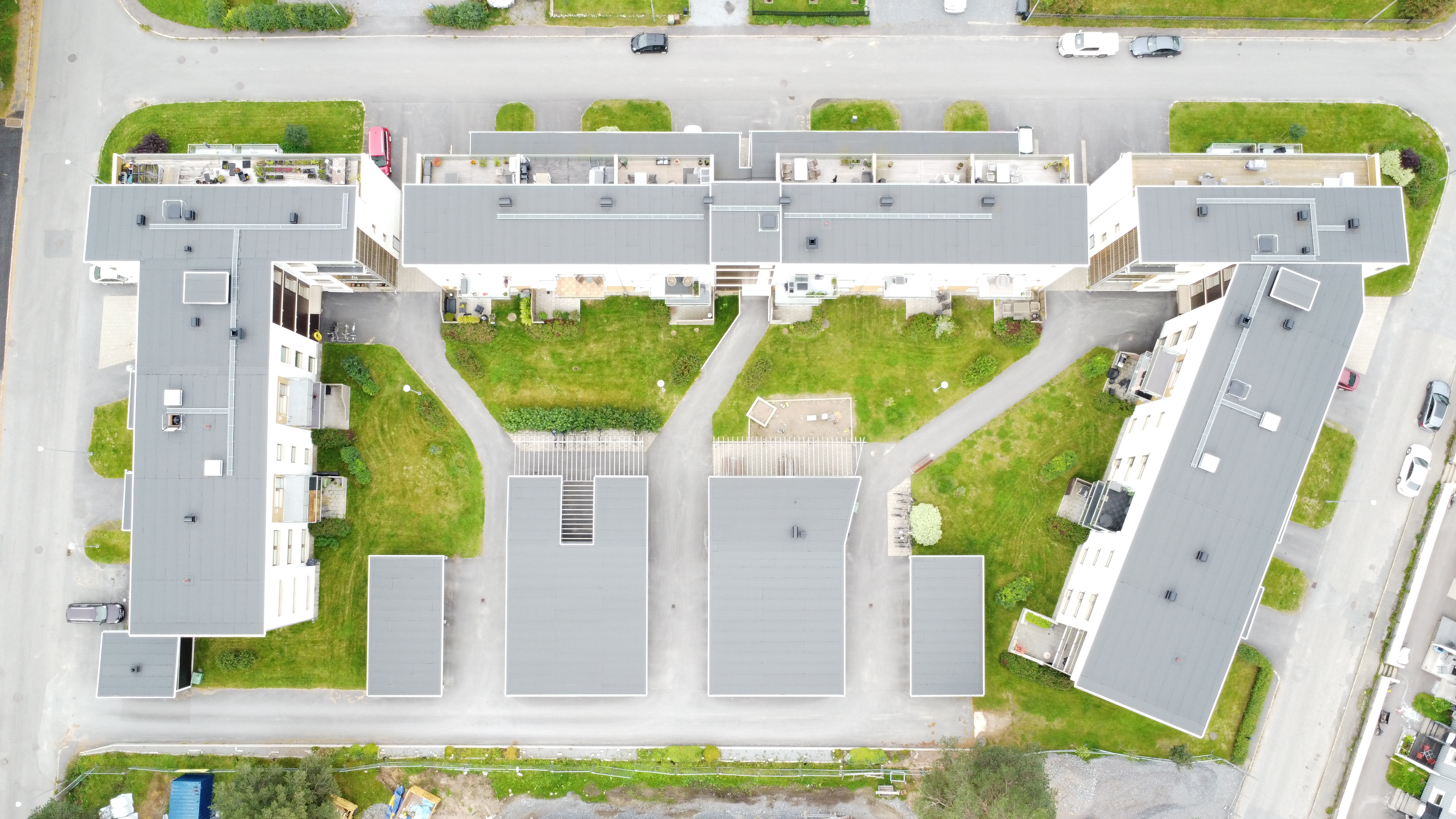 I utformandet av brf Trädgården har omgivningens karaktär satt sin prägel och ett stort fokus har legat på skapandet av föreningens utemiljö. Genom husens placering längs med Furumovägen, Södergatan och Genvägen bildas en lugn och skyddad innergård i brf Trädgården. En grön oas för gemenskap och trygghet där de privata uteplatserna angränsar till de gemensamma uterummet.