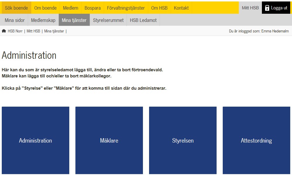 Med hjälp av tjänsten ”Administration” under fliken ”Mina Tjänster” i Mitt HSB kan bostadsrättsföreningar med administrativ förvaltning ”slå två flugor i en smäll” och registrera sig både hos Bolagsverket och hos oss på HSB.