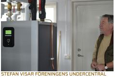 , vilket visade sig vara en mycket bra investering. När bergvärmen driftsattes fick de upp 4-14 grader vilket sedan omvandlades till värme i bostäderna. I kalkylen hade föreningen räknat med cirka 4-5 grader. Det innebär att pay-off-tiden för investeringen blev sju år istället för tio. Samtidigt la man in tilläggsisolering på vindarna. Bostadsrättsföreningen har också installerat solceller på taket. Av den el föreningen får in använder de 74% själva och 26% säljs vidare. Även snålspolande kranar sattes in i samtliga lägenheter. Med alla dessa investeringar så innebär det att föreningen nu klassas som Green building. Som i sin tur de boende har nytta av då man kan få ner sina bolånekostnader på många banker. Så sammanfattningsvis tycker jag att vi har fått till det väldigt, väldigt bra, säger Stefan.