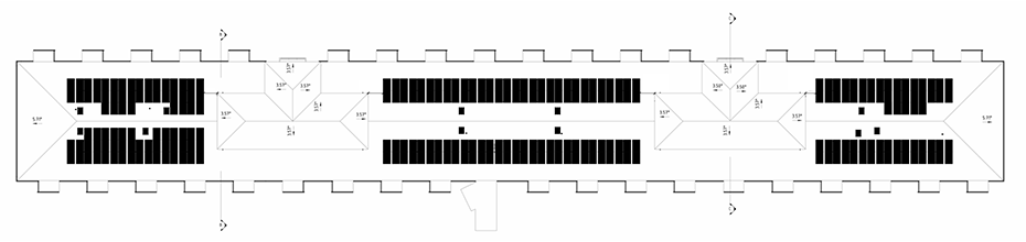 Fastighetens tak, sett från ovan, den svarta markeringen visar placeringen av solcelsanläggningen.