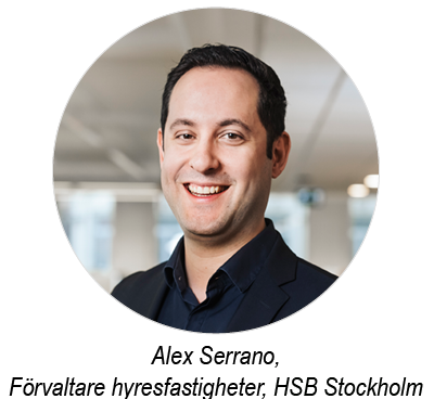 – Det har bland annat resulterat i att vi nu satsar på mer utebelysning och tar bort de miljöer som upplevs som otrygga, exempelvis vildvuxna buskage. Vi jobbar också hårt för att få bort all trafik från gårdarna. Ska barn röra sig säkert är det viktigt att det är bilfritt, säger Alex Serrano, Fastighetsförvaltare Hyresfastigheter HSB Stockholm.