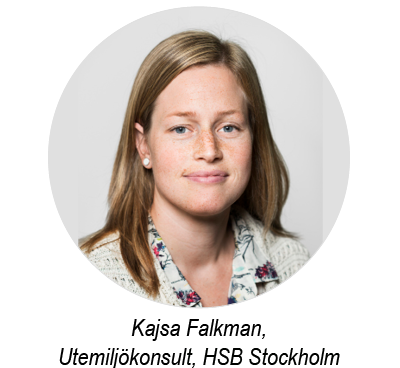 – En tom och öde gård känns inte trygg. När vi däremot skapar gårdar där barn kan leka och folk vill sitta och äta middag, ja då ökar känslan av gemenskap och trygghet, säger Kajsa Falkman, utemiljökonsult HSB Stockholm.