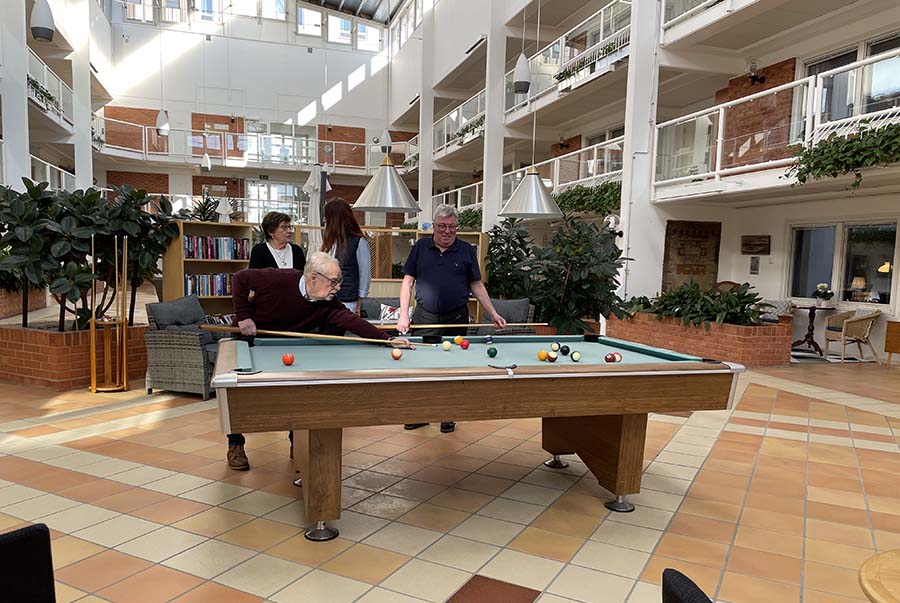 Förutom alla energieffektiviseringar så satsar föreningen även på den sociala hållbarheten. Det finns en aktiv fritidskommitté som anordnar julpyntning av huset med efterföljande julfest, biljardträffar, föreläsningar och andra roliga tillställningar. Den stora ljusgården är också en naturlig och trevlig mötesplats med bland annat en fontän, cafébord där man kan avnjuta en kaffe med grannen, bibliotek med sköna soffor och ett biljardbord. Gun berättar: