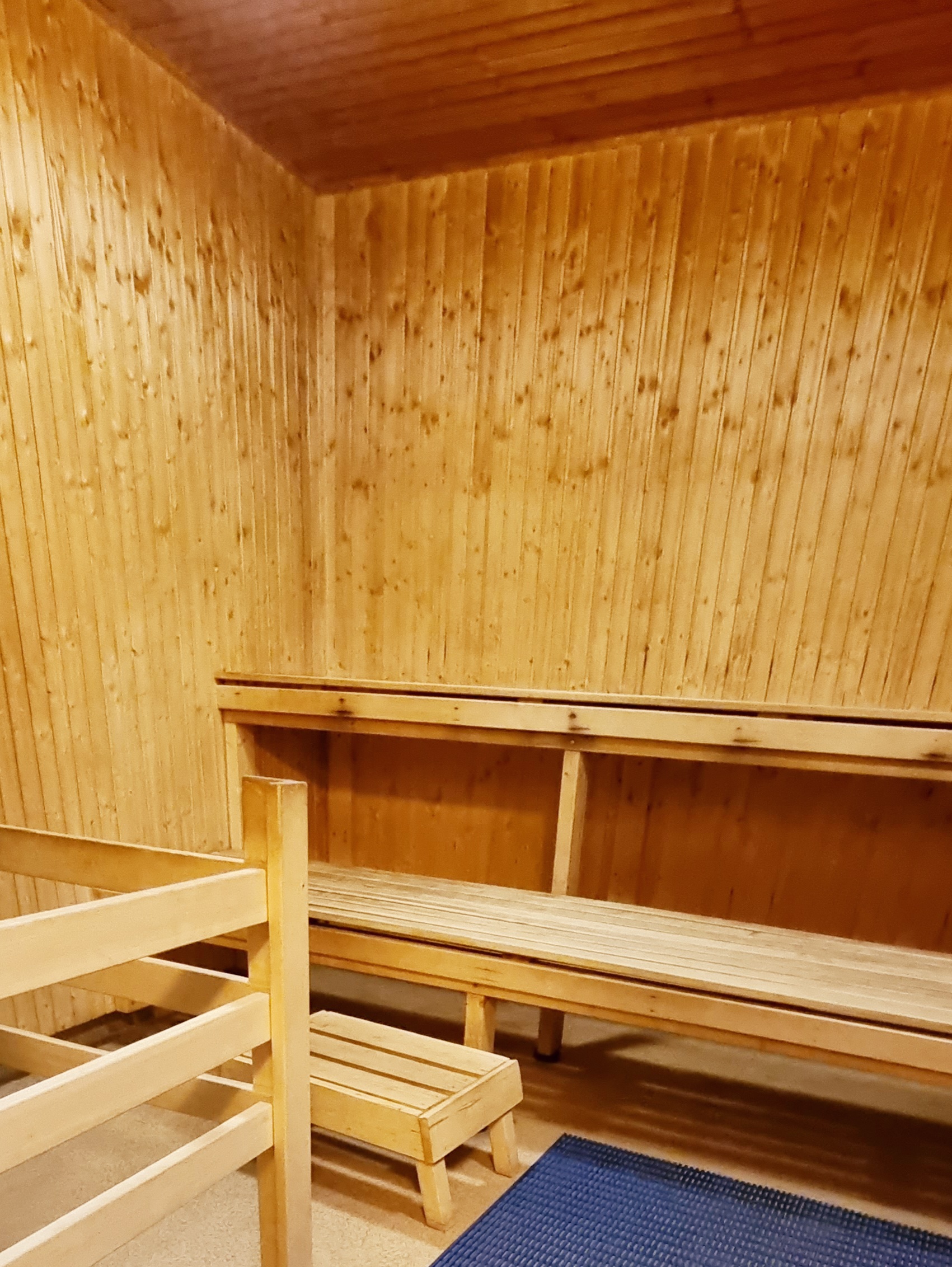 För att boka bastutid används det skriftliga bokningspappret utanför bastun.