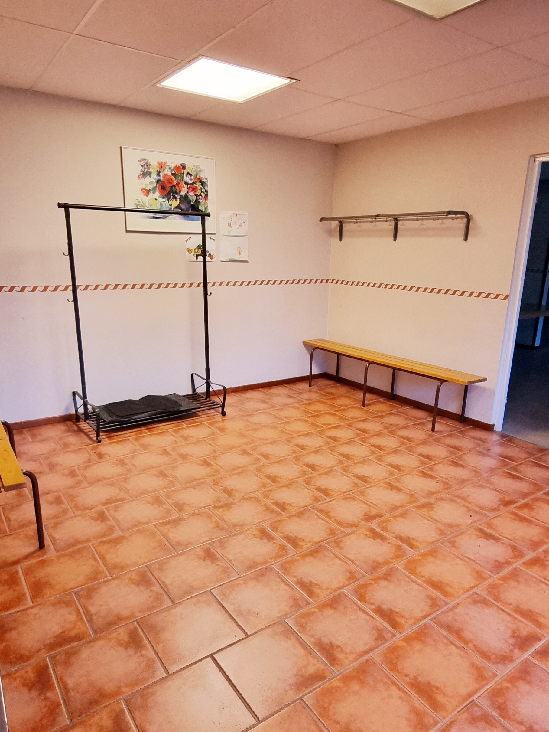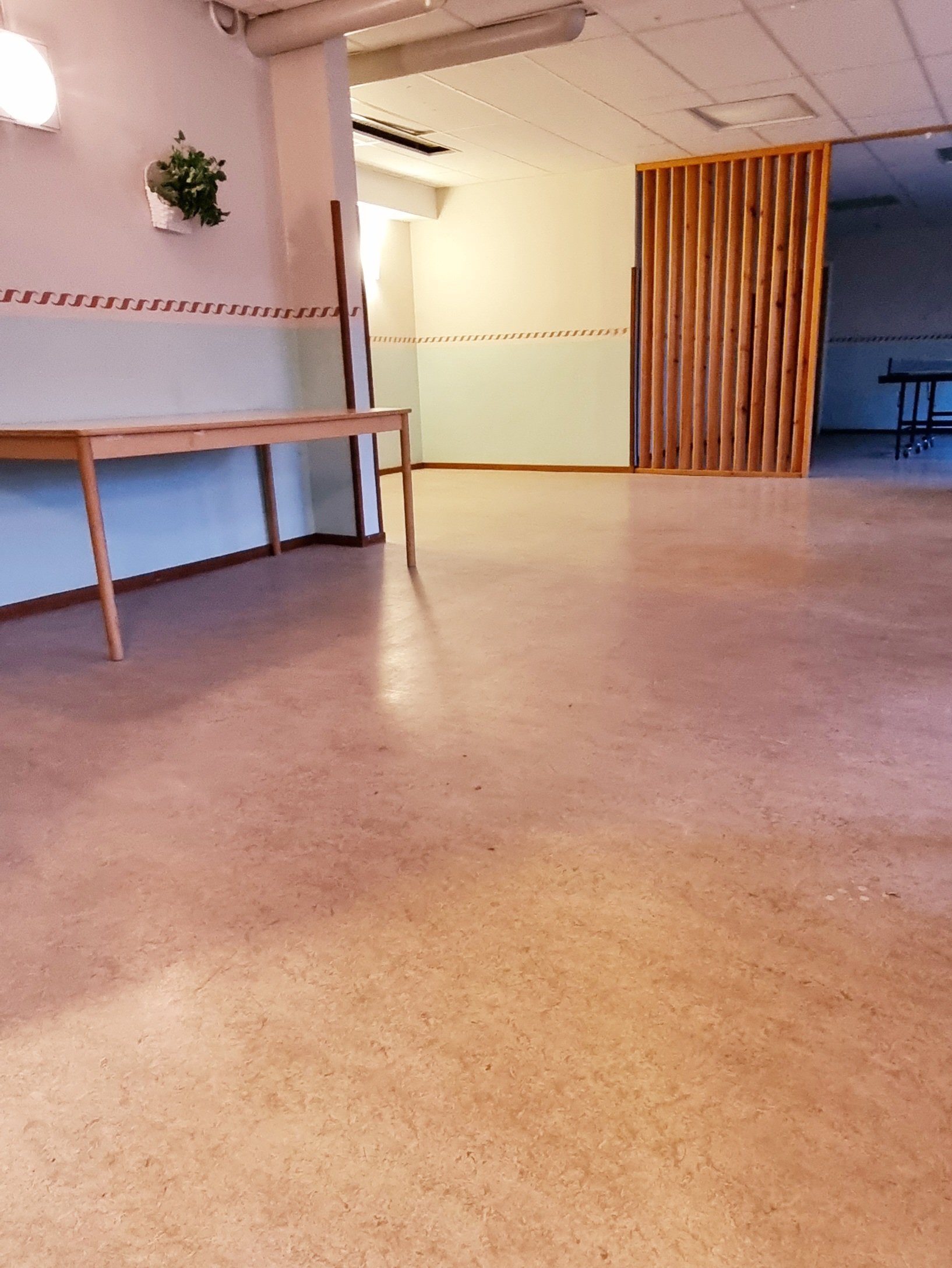 I föreningslokalen på Vilbergsgatan 249 finns en stor hall med plats för exemeplvis barnvagnar och rulatorer, för god tillgänglighet. Det är möblerat till cirka 30 sittande gäster och det finns gott om öppna ytor exempelvis för dans och lekar på kalaset. Dessutom finns det ett pingisbord. Intill hittar du ett mindre kök där möjlighet till att brygga kaffe och förbereda mindre förtäring finns.