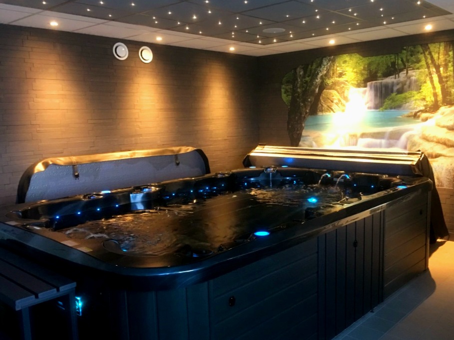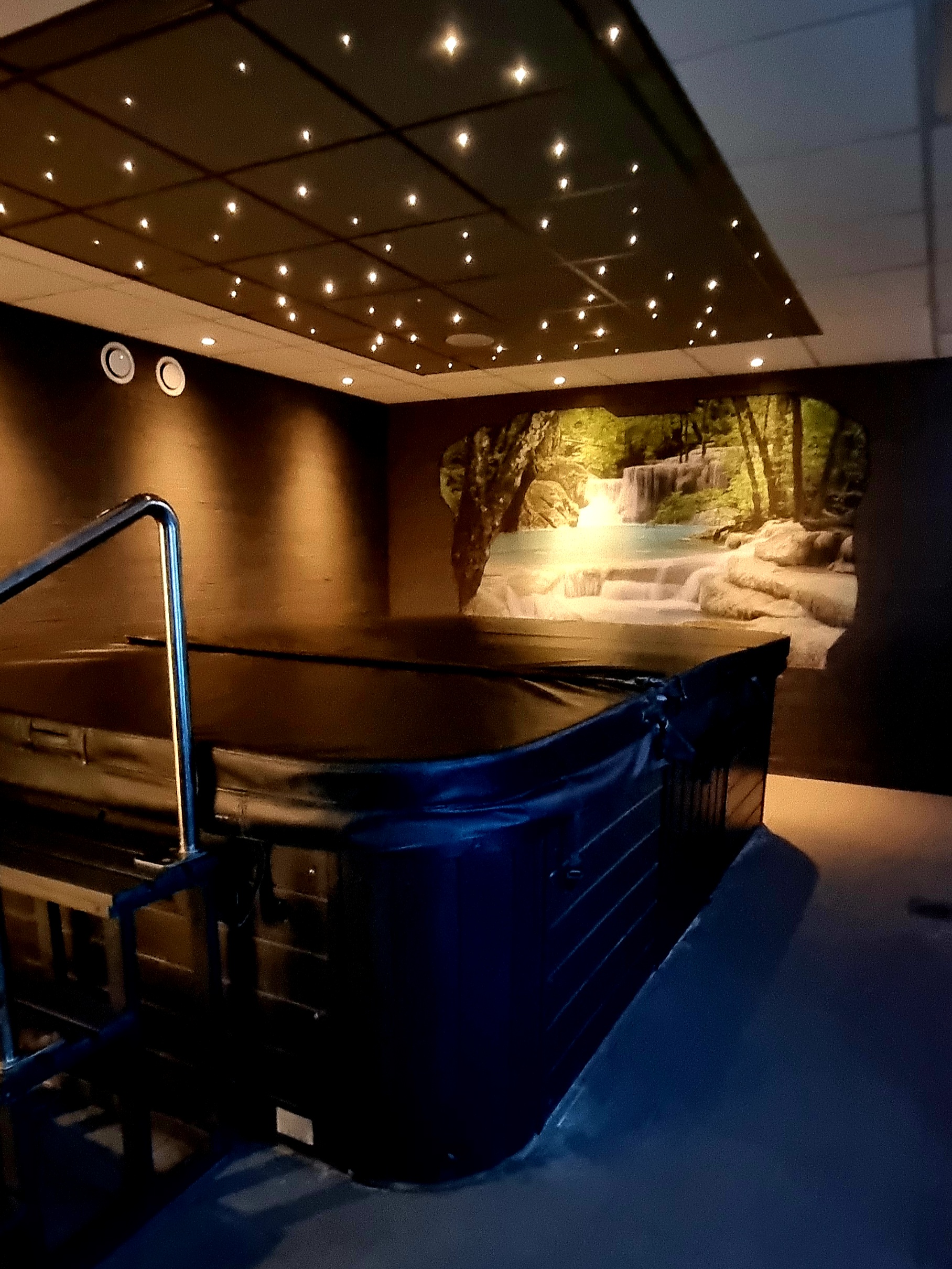 Relaxavdelningens bubbelpool rymmer 10 personer och intill finns det möbler med plats för umgänge och kanske en kall dricka. Det finns kylskåp och mindre köksyta med vask. Så ställ drickan på kylning och servera lite frukt för en fulländad spaupplevelse. Omklädningsrum, duschar och bastu finns också i relaxavdelningen.