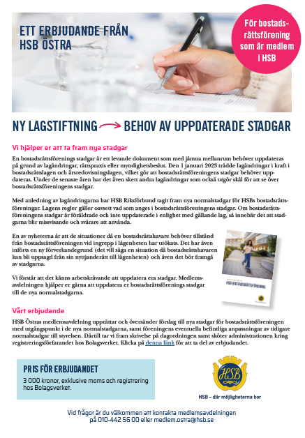 Frågor eller funderingar? Vänligen kontakta HSB Östras medlemsavdelning via mejl medlem.ostra@hsb.se