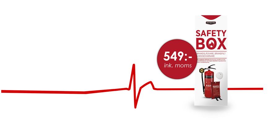 Safetybox är den perfekta grunden till ett tryggt brandskydd hemma. Som HSB-medlem får du en 6 kg pulverbrandsläckare med den högsta släckeffekten på marknaden (55A), en Pebble brandvarnare som med sin användarvänliga design är lätt att underhålla och testa, samt en brandfilt med silikonbeläggning, 120x120 cm till det förmånliga priset 549 kronor.
