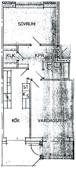 Hyreslägenhet med 2 rum och kök. Våning 3. 54 kvm.