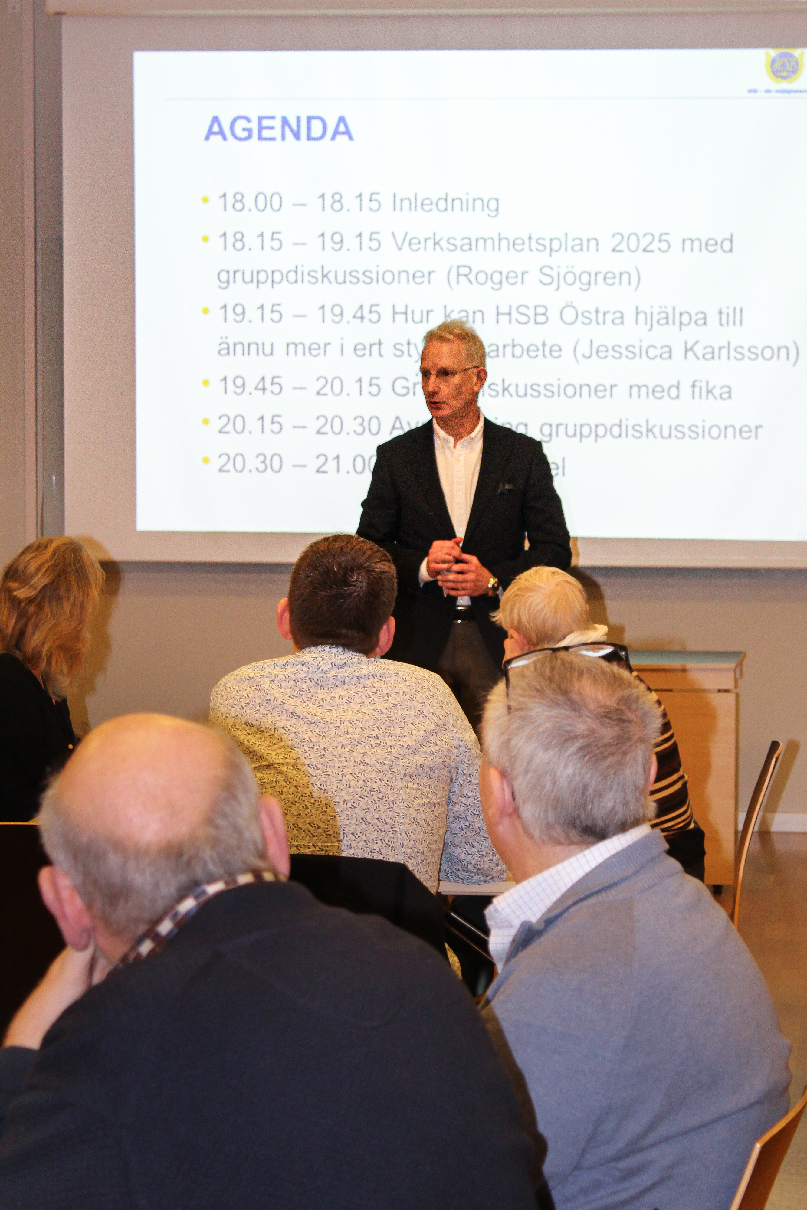 Ordföranden från trettio bostadsrättsföreningar kom och inledde kvällen med mingel och räkmacka innan Roger Sjögren, HSB Östras vd, intog talarstolen.
