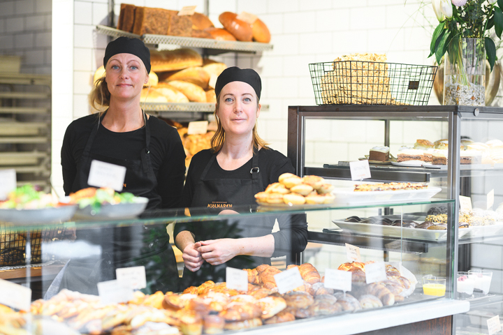 – Här ska vi sälja nybakat bröd från klockan sju på morgnarna sju dagar i veckan. Även om vi har café och lunchservering är vi ju i grunden bagare så brödet är såklart väldigt viktigt för oss. Jag tänker mig att de som bor i huset ska kunna komma ner i tofflor och morgonrock och köpa frukostfrallor. Kanske vi borde bjuda på brödet till den första som vågar sig ner klädd så, säger hon med ett skratt.