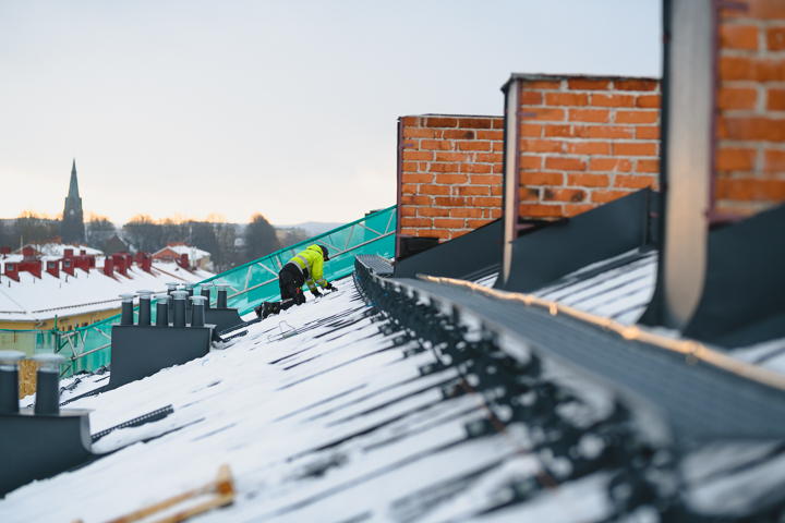 – Vi visste ju inte riktigt hur det skulle se ut när vi lyfte bort takplåten som suttit där i nästan exakt åttio år men jag är överraskad att det var så bra byggt och välbehållet som det var, säger Klas Balck från Balck & Hjelmgrens plåt och smide. Han är projektansvarig för takrenoveringen.