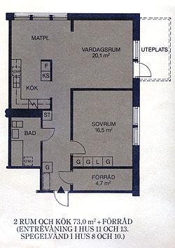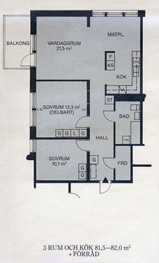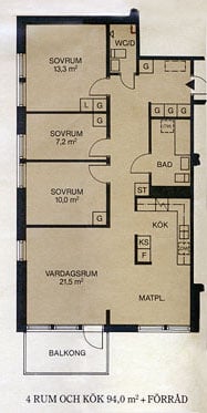 Ritningarna visar våra olika lägenheters planlösning vid byggandet av föreningens fastigheter. Smärre förändringar kan ha gjorts av bostadsrättsinnehavaren därefter.
