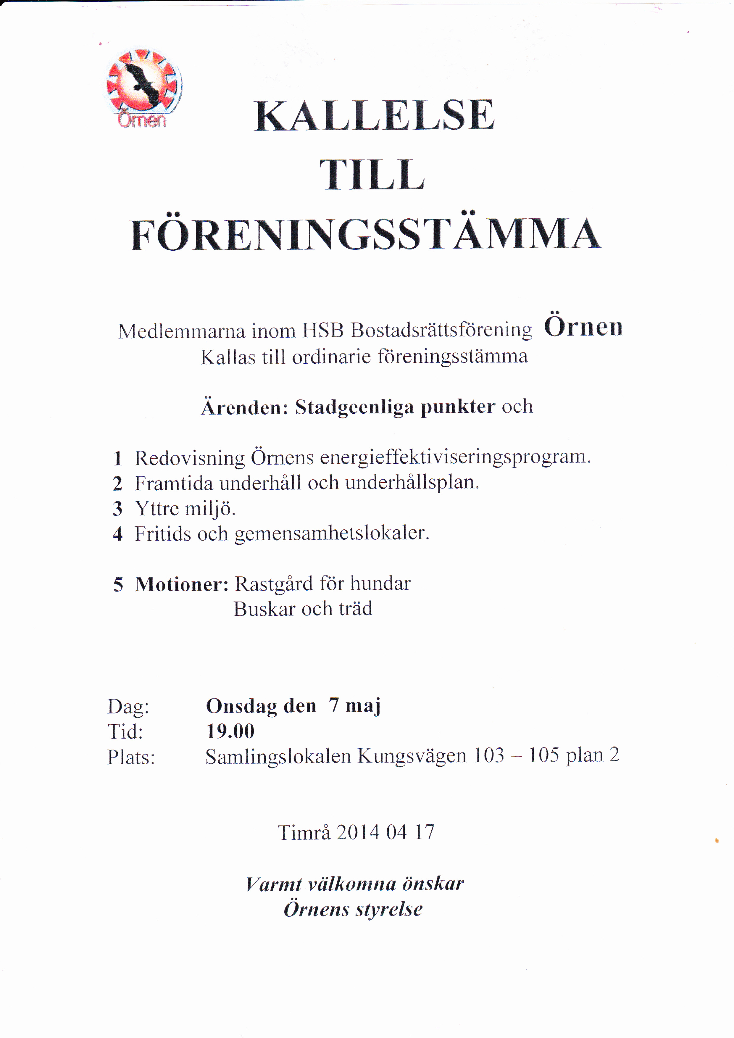 Vid årets stämma är ordföranden Bertil Lehto och sekreteraren Tommy Andersson i tur att avgå. Kristina Åhlander har flyttat.