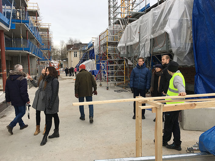 Anders Wallner och Magnus Carlsson, HSB, visade runt tillsammans med entreprenören NCC.