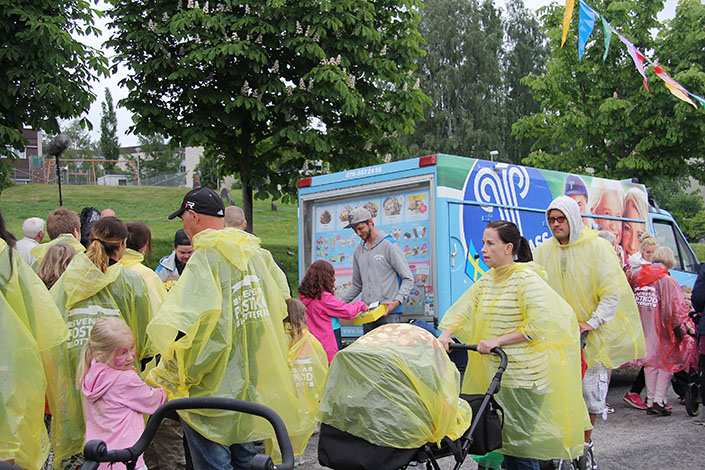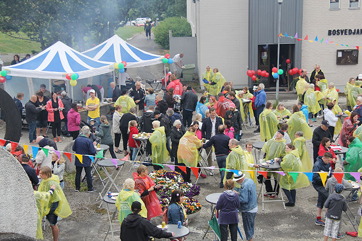 Dagen till ära fanns hoppborg, tombolas, grilltält, glassbil och mycket annat kul på plats vid amfiteatern utanför Bosvedjans kyrka. Många trotsade regnet och kom för att fira, bland andra Margareta och Per-Erik Nylander med barnbarnen Ida, Elin och Julia Utterberg.