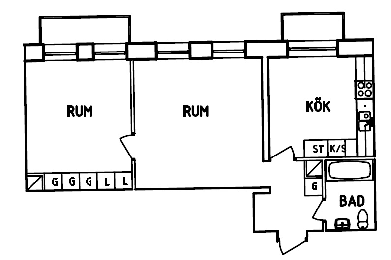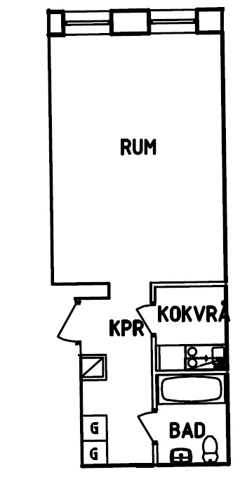 Kokvrån vänder sig främst till hen som inte lagar alltför mycket mat hemma. Trinettkök med två plattor. Diskmaskin.