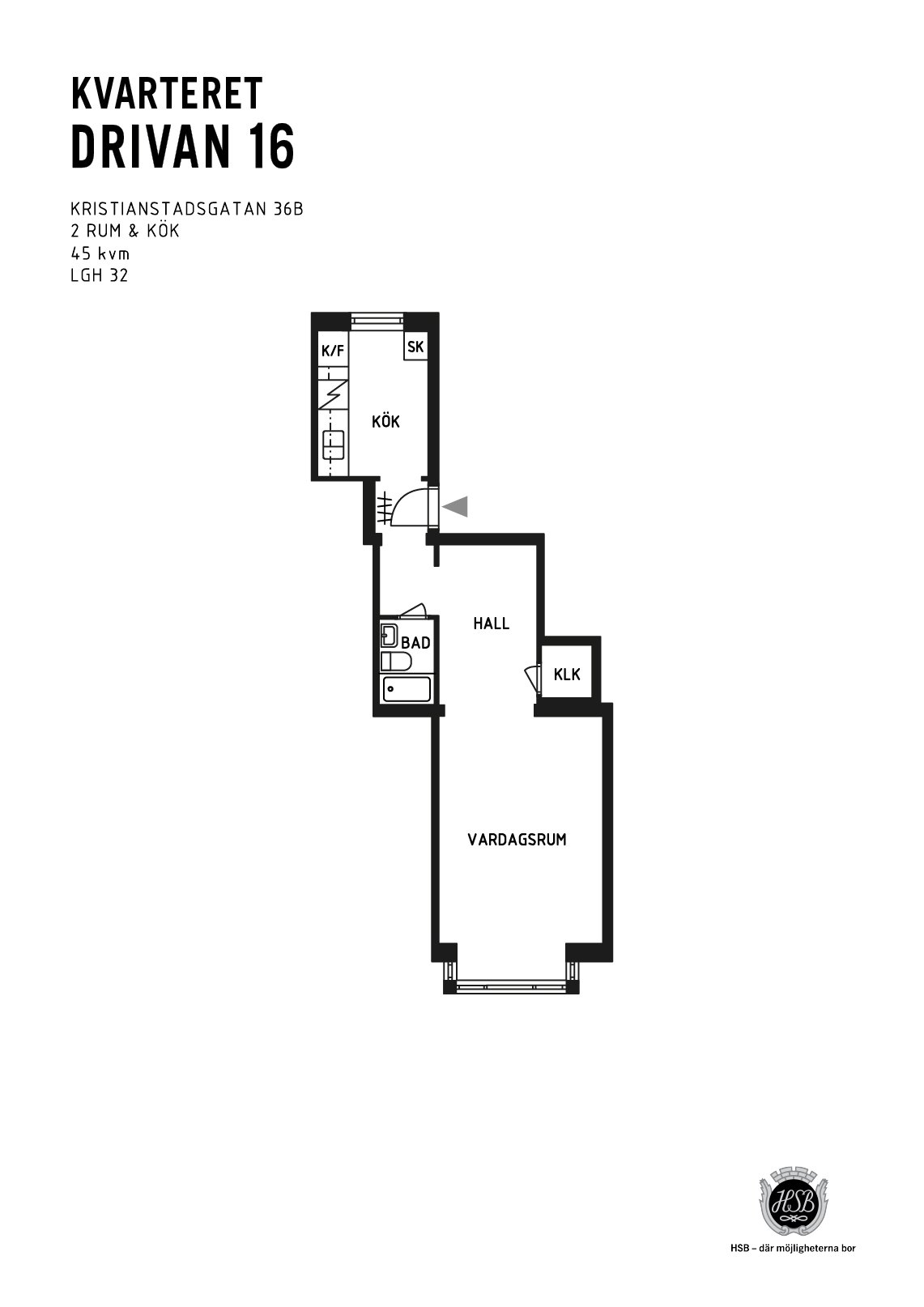 Välkommen till denna trivsamma 2 rum och kök om 45 kvm på Kristianstadsgatan 36B.