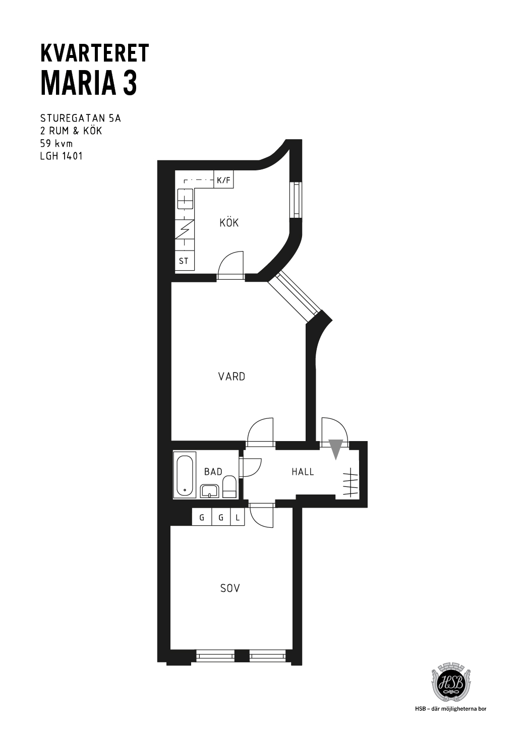 Lägenheten är genomgående med ett underbart ljusinsläpp från båda hållen. Sovrummet vetter med gården så här är alltid lugnt och behagligt.