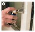 Smörj även de tre låskolvarna som sitter i olika höjder längs dörrkanten. Kolvarna pressas in i dörrkarmen och för att friktionen ska bli lägre behövs smörjmedel.