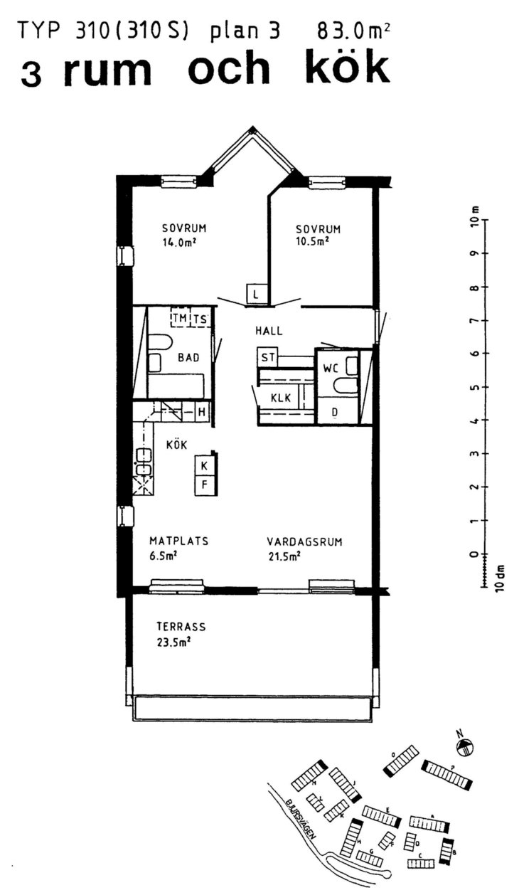 Det finns femton typer av treor i området. Längst ned på ritningen så ser du var och i vilka huskroppar respektive bostadsrätt finns.