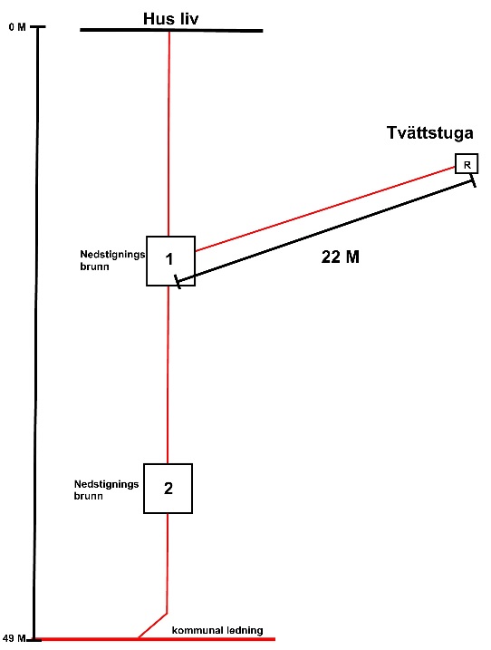 Röret från tvättstugan till den översta nedstigningsbrunnen höll inte fräsningen och det uppstod ett hål på botten av det. Övriga rör har gått bra att fräsa.