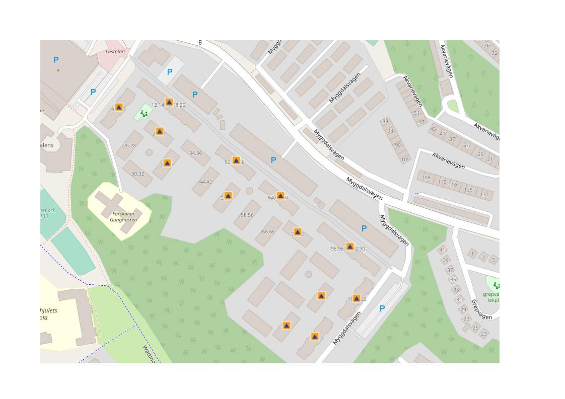 Miljöhusen Det finns åtta miljöhus för hushållsavfall i området. I dessa finns märkta kärl för källsortering av glas (färgat, ofärgat) plåt, plast och batterier. Miljöhusen är alltid låsta men du kommer in med din elektroniska nyckel. återvinningshus/Grovsophusen öppettider 06 – 19 I området finns tre sophus som är avsedda för pappersavfall och grovsopor. Pappersavfall slängs i kärlen i pappersrummet. Wellpapp viks ihop och läggs i ståltrådsvagnarna. Grovsopor slängs i kärlen i grovsoprummet. Elavfall läggs i därför avsedda vagnar. Lägg smådelar i en plastpåse så att det inte ramlar genom bottnen ner på golvet. Kyl och frys får inte ställas in. Ring kommunen som hämtar gratis. Sophusen är låsta 19.01 – 5.59 övriga tider kommer du in med din elektroniska nyckel.