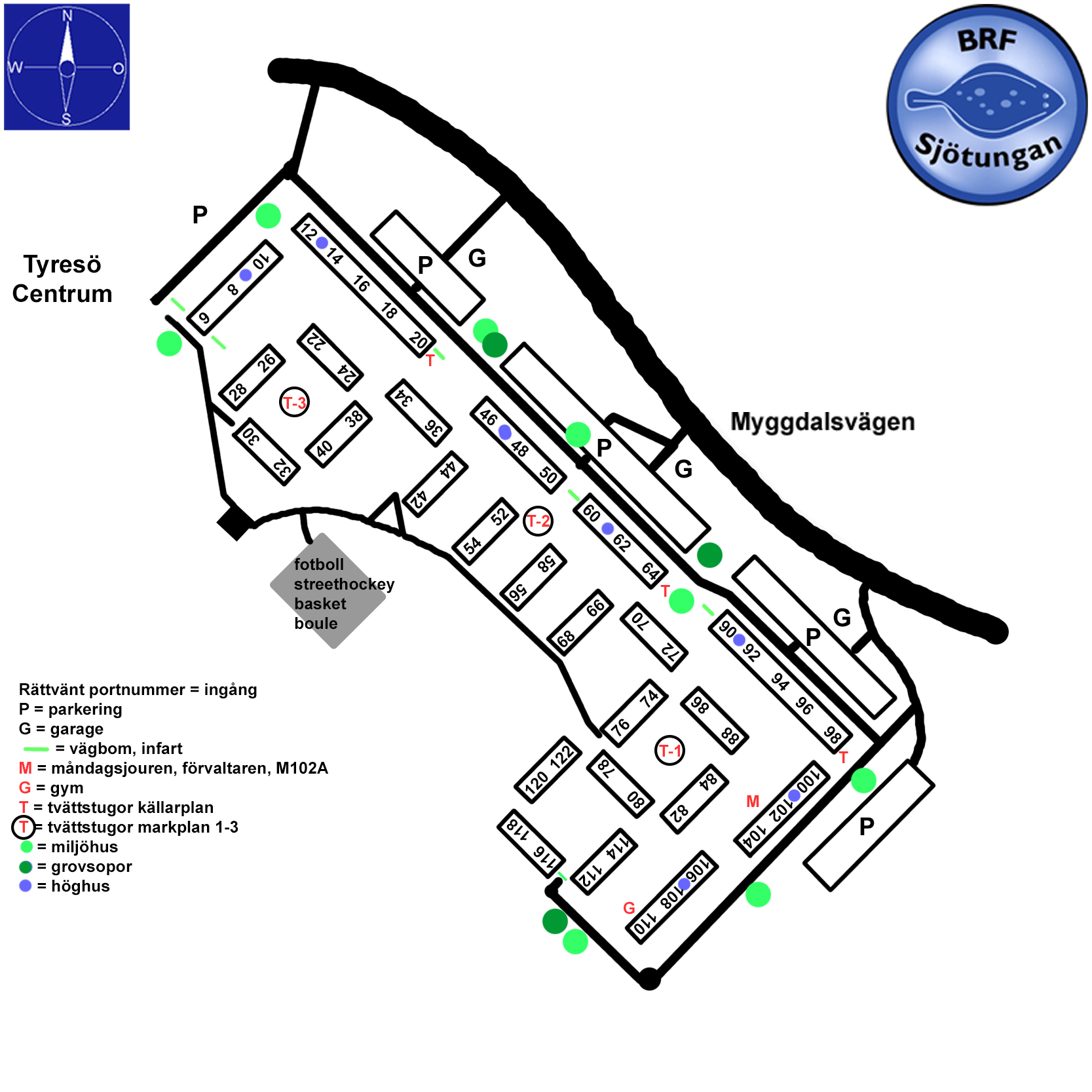 Skyddsrummen besiktas liksom övriga fastigheten varje år. Nedan finns en karta över de skyddsrum som finns i Sjötungan. Vill man läsa mer se MSBs hemsida MSB – klicka här