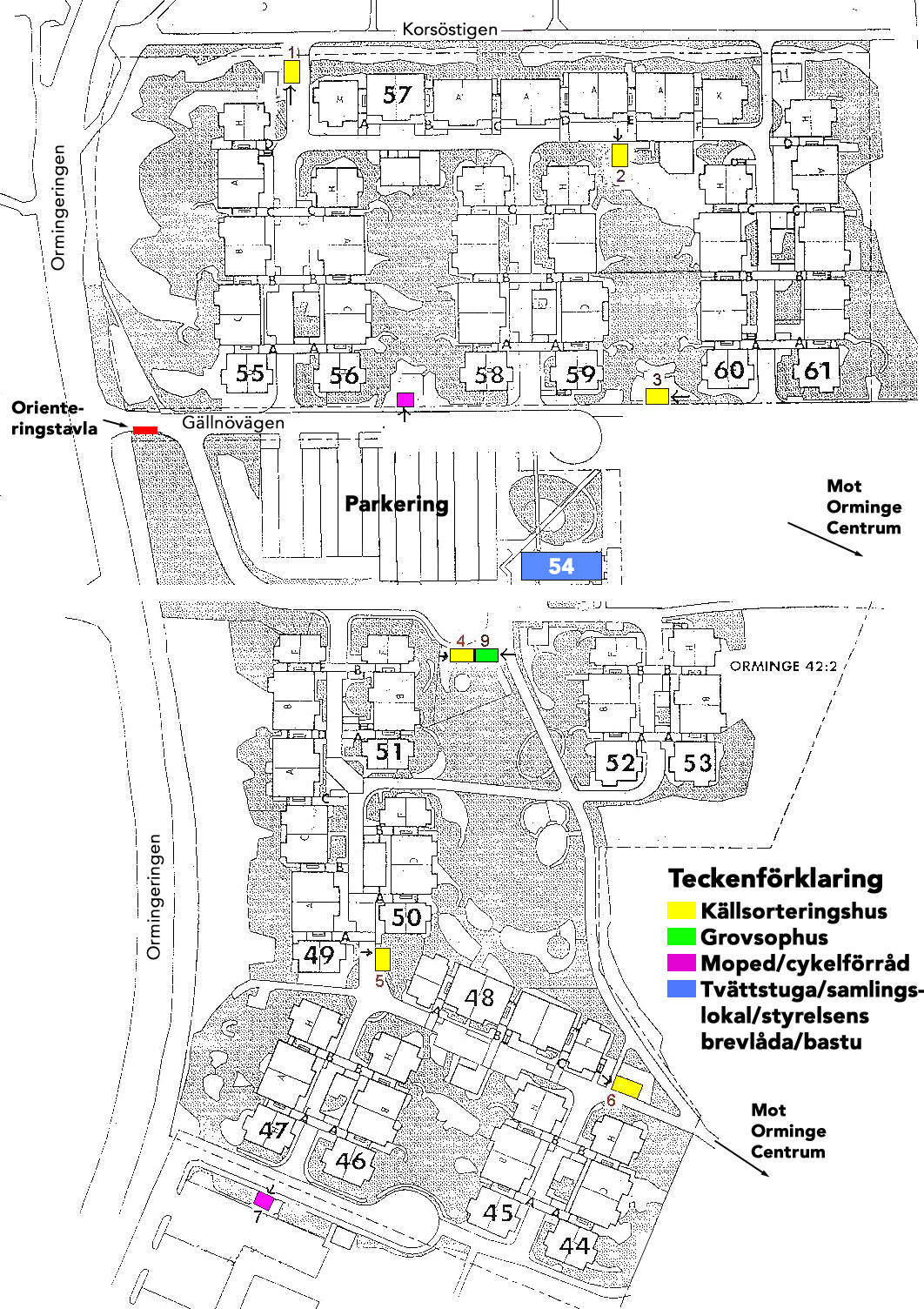 Alla hushåll har var sitt källarförråd. Extra källarförråd finns att hyra i mån av tillgång.