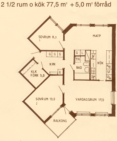Av denna lägenhetstyp finns det 15 stycken lägenheter med ungefär samma planlösning.