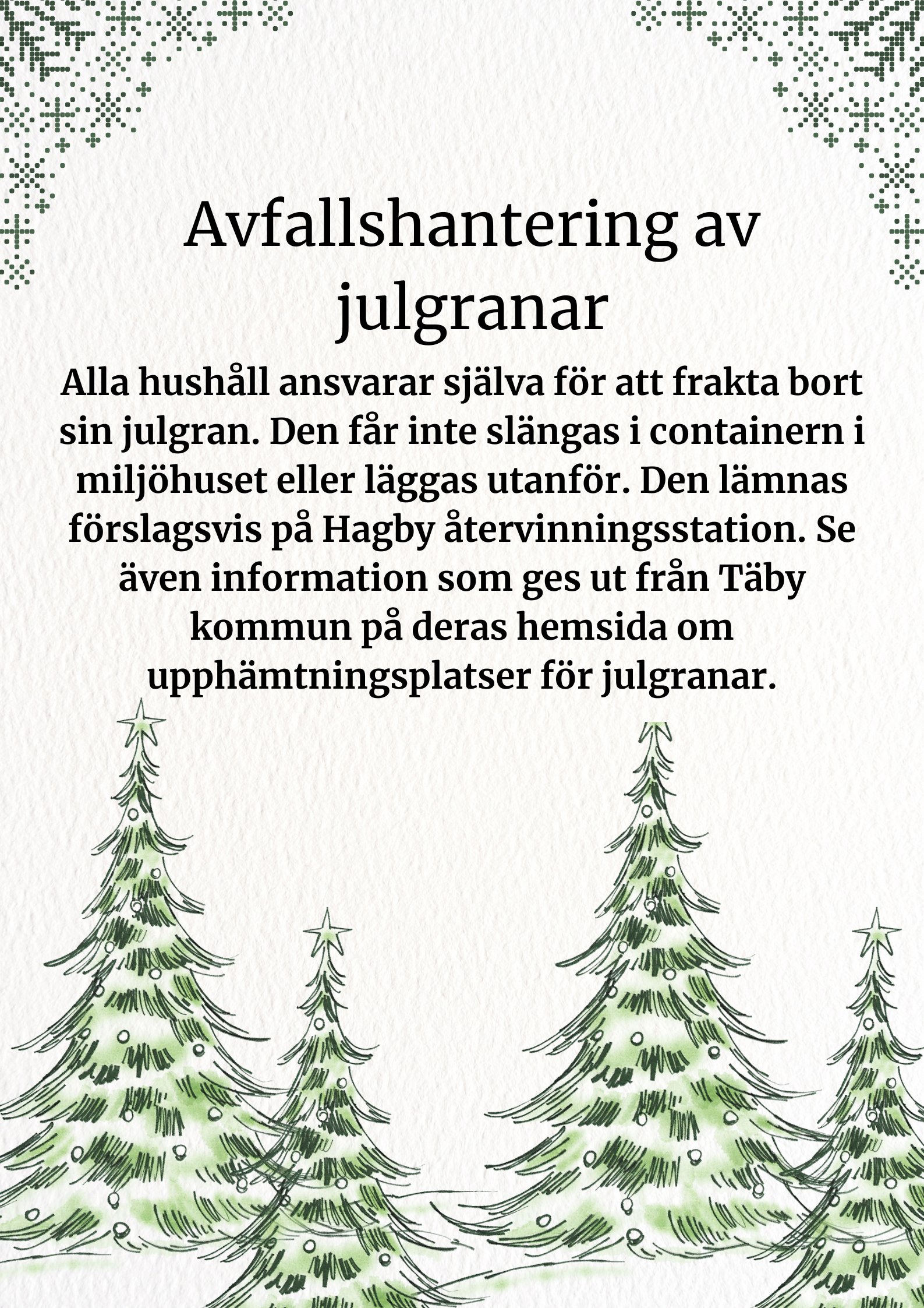 Julen närmar sig med stormsteg. Bifogat finner ni information om hur julens avfall kan sorteras.