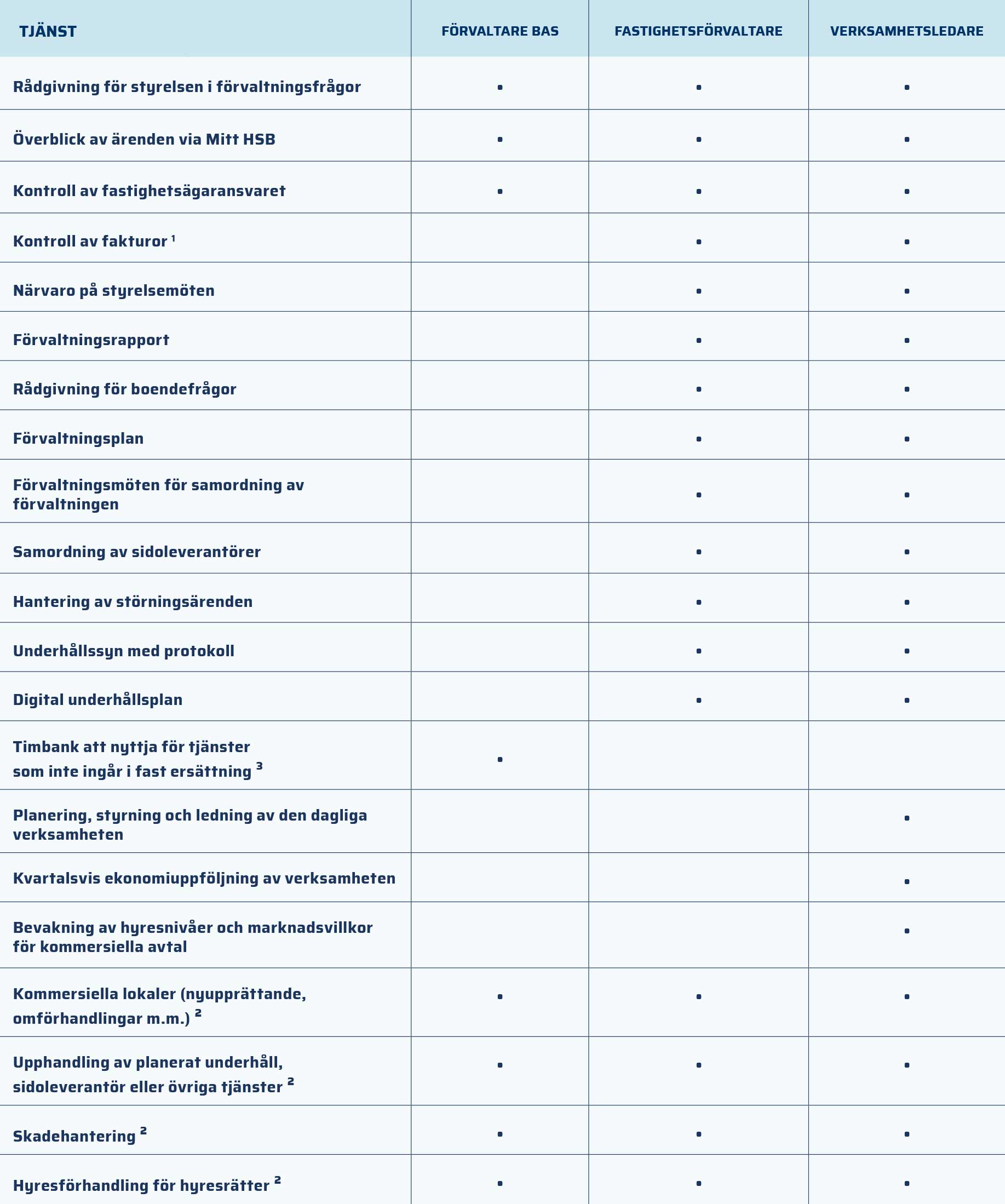 Vi på HSB har över 100 års erfarenhet av fastighetsförvaltning. Det gör att vi vet vad bostadsrättsföreningar behöver hjälp med. Med utgångspunkt i ert behov av stöd, hittar vi tillsammans en lösning som passar er. Vi hjälper er med allt från att hålla koll på myndighetskrav och försäkringar till löpande drift och kontakt med boende. Allt för att skapa en fastighet som bevaras och utvecklas över tid.