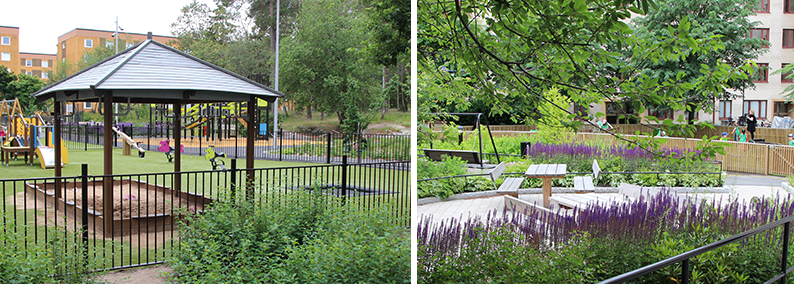 I våra projekt tar vi fram en budget utifrån det man vill göra och lägger sen upp en rimlig plan för genomförandet tillsammans med styrelsen. Man kan lägga upp investeringarna i etapper över flera år. Vi anpassar också den framtida utemiljön efter den budget föreningen har för skötsel. Det är en bra modell att utgå ifrån, så att man inte gör stora investeringar och sedan inte har medel att sköta den på ett bra sätt.