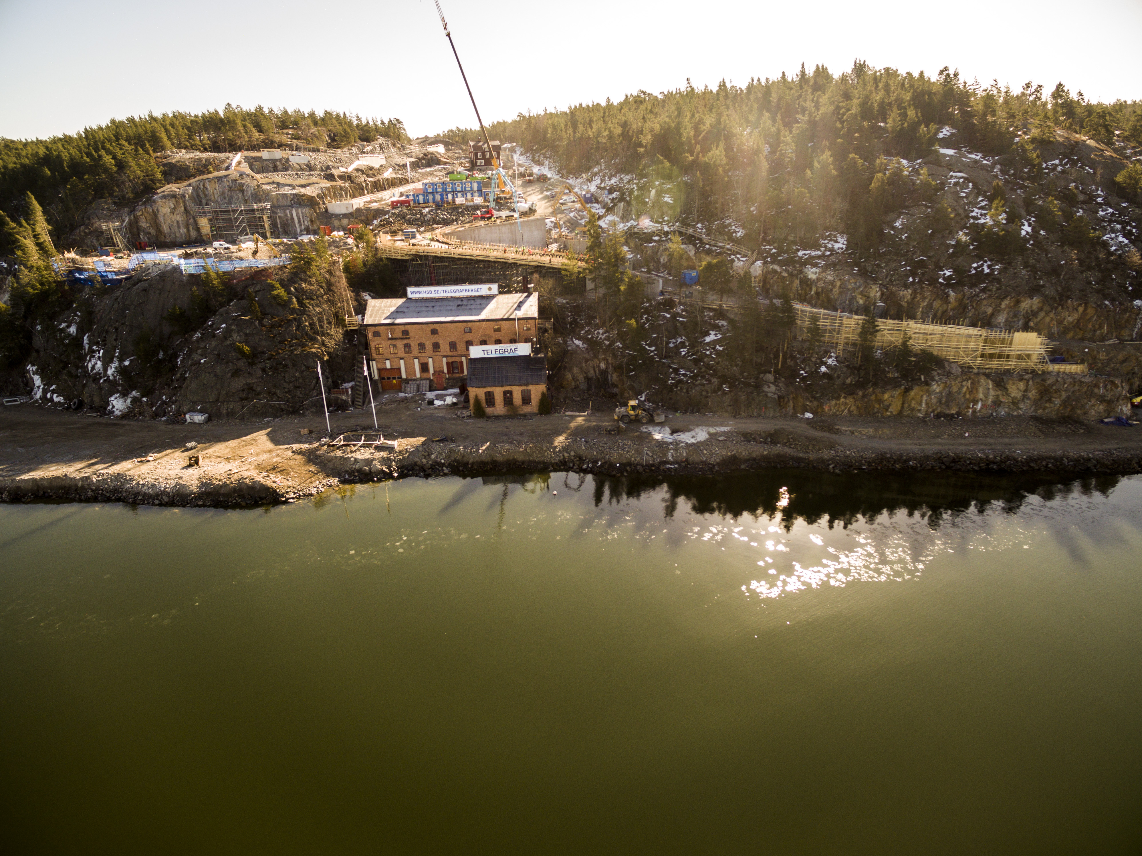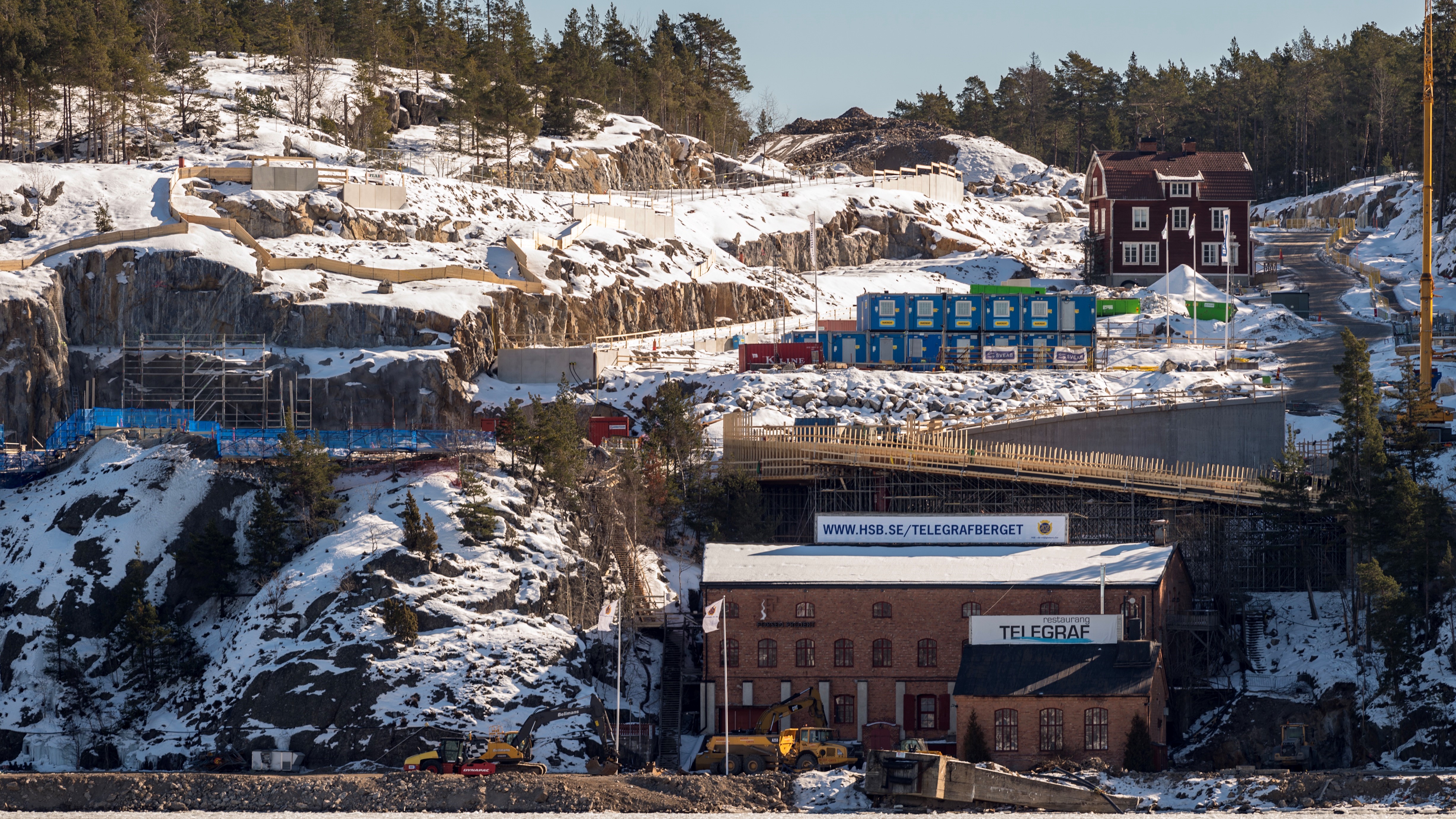 Inom HSBs infrastrukturprojekt i Telegrafberget pågår byggnation av den bro som leder ner till vattnet. Gjutningar av brospannet kommer att starta inom kort. Nere på kajplanet pågår rivning av äldre betongkonstruktioner och marken förbereds för den nya kajkonstruktion som kommer att byggas vid vattenkanten. Allt vatten och spillvatten i området kommer att pumpas från och till Käppalaverket på Lidingö. Därför har man i dagarna förlagt en ny sjöledning på botten mellan Telegrafberget och Käppala på Lidingö.