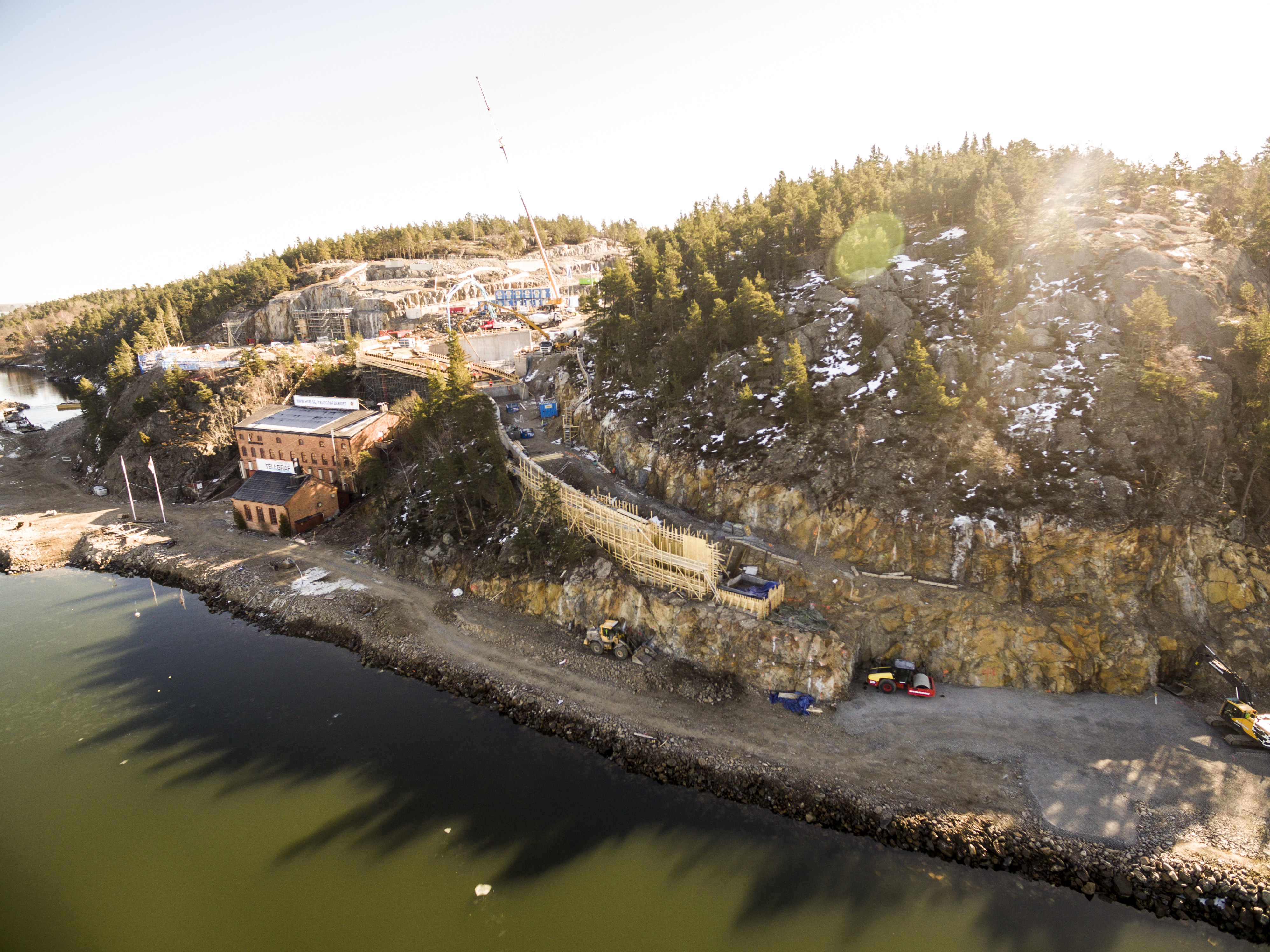 Arbetet med HSB brf Fyrhusen fortlöper och entreprenören som utför mark- och grundläggningsarbeten har nyligen gjutit de första betongkonstruktionerna. Dessa utgörs av stödmurar som kommer att löpa mellan husen och bergväggarna vid hus 5 och 4. Noggrant arbete har lagts ner på att bygga arbetsbryggor och ställningar ute på bergskanten för att möjliggöra arbetet med de yttre stödmurar som omgärdar projektet. Gjutning av dessa konstruktioner sker inom den närmsta tiden. Schaktning för den installationskulvert som ligger under garageplan är färdigställd och grundläggningen för dess bottenplatta påbörjas inom kort.