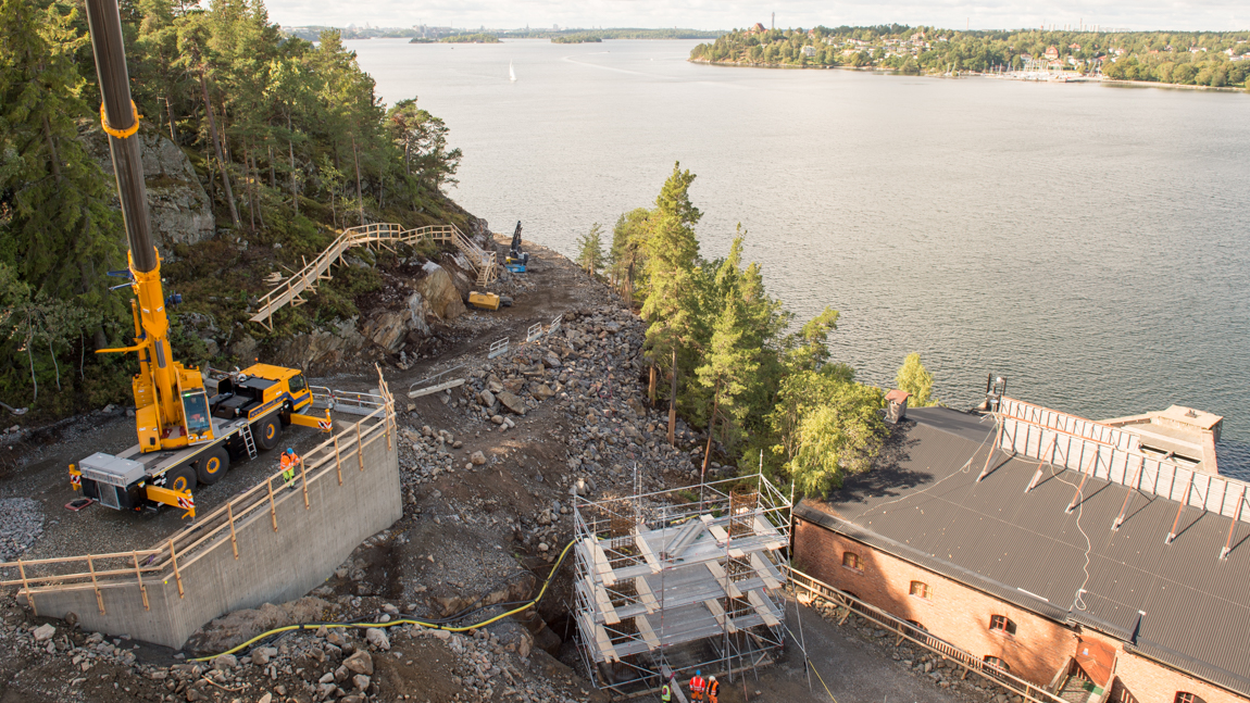 09 oktober 2017 PEAB är anlitad entreprenör för utförandet av bergschakten på platsen för HSB brf Fyrhusens huskroppar samt för byggnation av vägar. Sprängningsarbetet har påbörjats och kommer att pågå under hösten. Samtidigt fortsätter detaljprojektering och upphandling av entreprenörer och leverantörer för projektets samtliga delar. För byggnation av stödmur och brokonstruktion är SVEAB upphandlad och arbetar nu med bergschakt, formsättning och gjutning av grundkonstruktion.