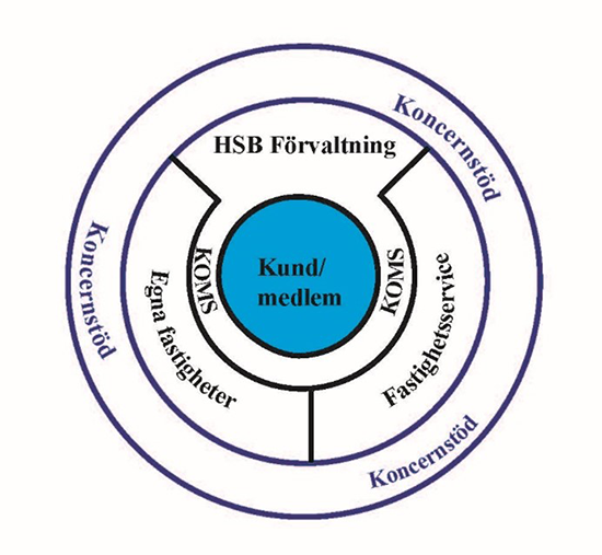 För att kunna möta denna målbild har HSB Uppsala och HSB Boservice ändrat om i organisationen. Fyra affärsområden (Egna fastigheter, Teknisk förvaltning, Ekonomisk förvaltning och Fastighetsservice) har blivit tre (HSB förvaltning, Fastighetsservice och egna fastigheter). För att kunder och medlemmar ska få bästa möjliga service (”En väg in”) har en ny avdelning skapats, ”Koms”. I omorganisationen ingår även att flytta den ekonomiska förvaltningen och orderavdelningen från dotterbolaget HSB Boservice till HSB Uppsala ekonomiska förening. Kvar i dotterbolaget HSB Boservice blir fastighetsservice. Den nya organisationen gäller från 1 januari 2024 men organiseringen av ”Koms” inklusive ombyggnation av entréer beräknas vara klart under april 2024