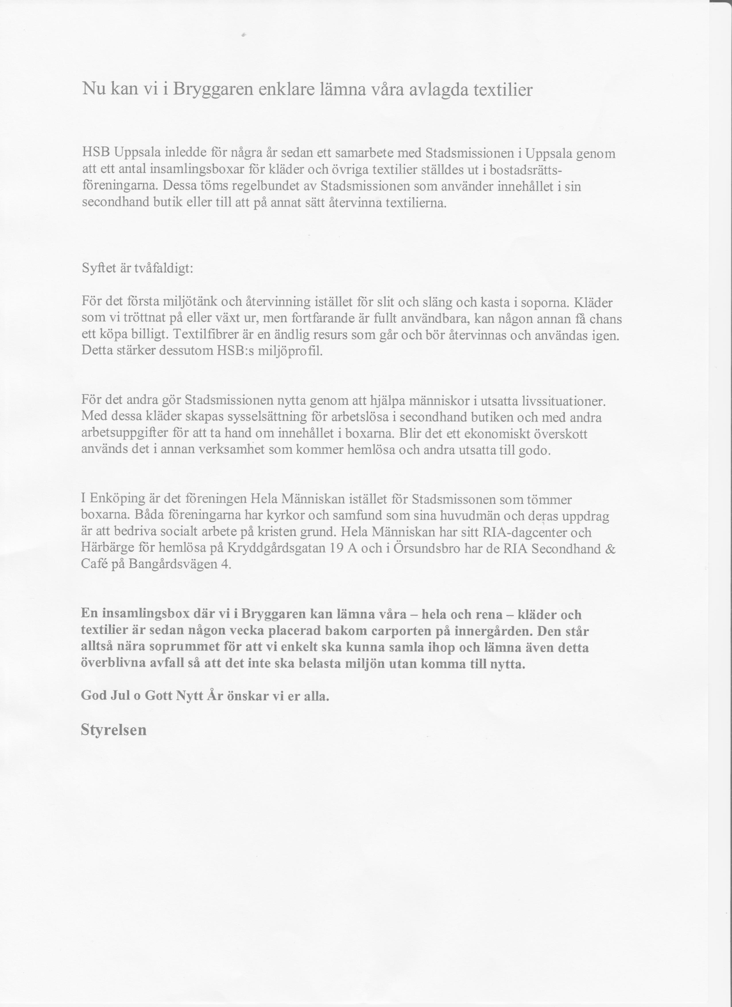 Information från styrelsen