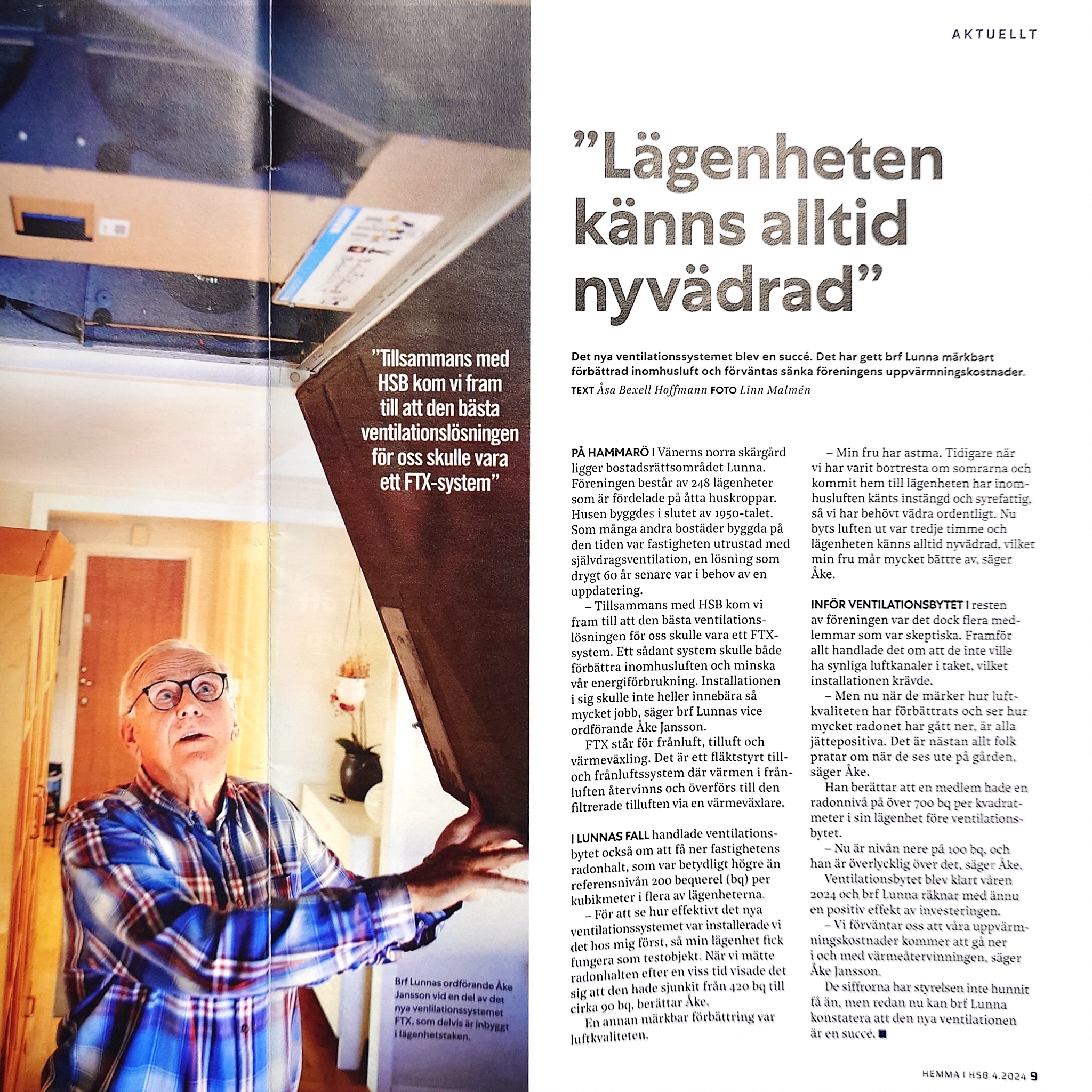 Det nya förslaget med ”liten” FTX värmeväxlare (1050 x 700 x 296 mm) placeras i taket på våra förråd (ingen ombyggnad av våra vindar behövs). FTX-aggregaten hängs upp i taket med vibrationsdämpning. Se bil. Varje aggregat innehåller 2 fäktar (till- resp. frånluft – max 170W effekt när fläktarna går med full effekt. Dessutom finns det en liten el-värmare som drar max 500W vid extrema behov vintertid). FTX-aggregatet fjärrstyrs av lägenhetsinnehavaren.